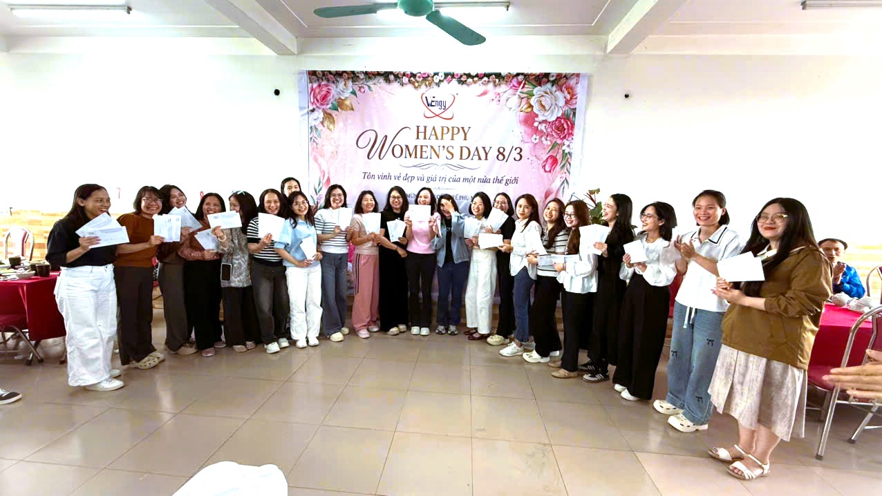 Nhân dịp kỷ niệm Ngày Quốc tế Phụ nữ 8/3, Công ty VEngy đã tổ chức chương trình chúc mừng dành cho toàn thể nữ cán bộ, nhân viên đang công tác tại công ty. Năm nay, do ngày 8/3 trùng vào ngày Chủ nhật, Ban lãnh đạo công ty đã khéo léo lồng ghép chương trình chúc mừng vào chuyến du xuân đầu năm được tổ chức vào ngày thứ Bảy trước đó, tạo nên một không khí vui tươi, ấm áp và tràn đầy ý nghĩa cho toàn thể cán bộ, nhân viên tham gia. Đây không chỉ là dịp để toàn thể công ty cùng nhau tận hưởng không khí mùa xuân tươi mới, mà còn là cơ hội đặc biệt để tôn vinh và tri ân những đóng góp quan trọng của chị em phụ nữ trong sự phát triển chung của VEngy.