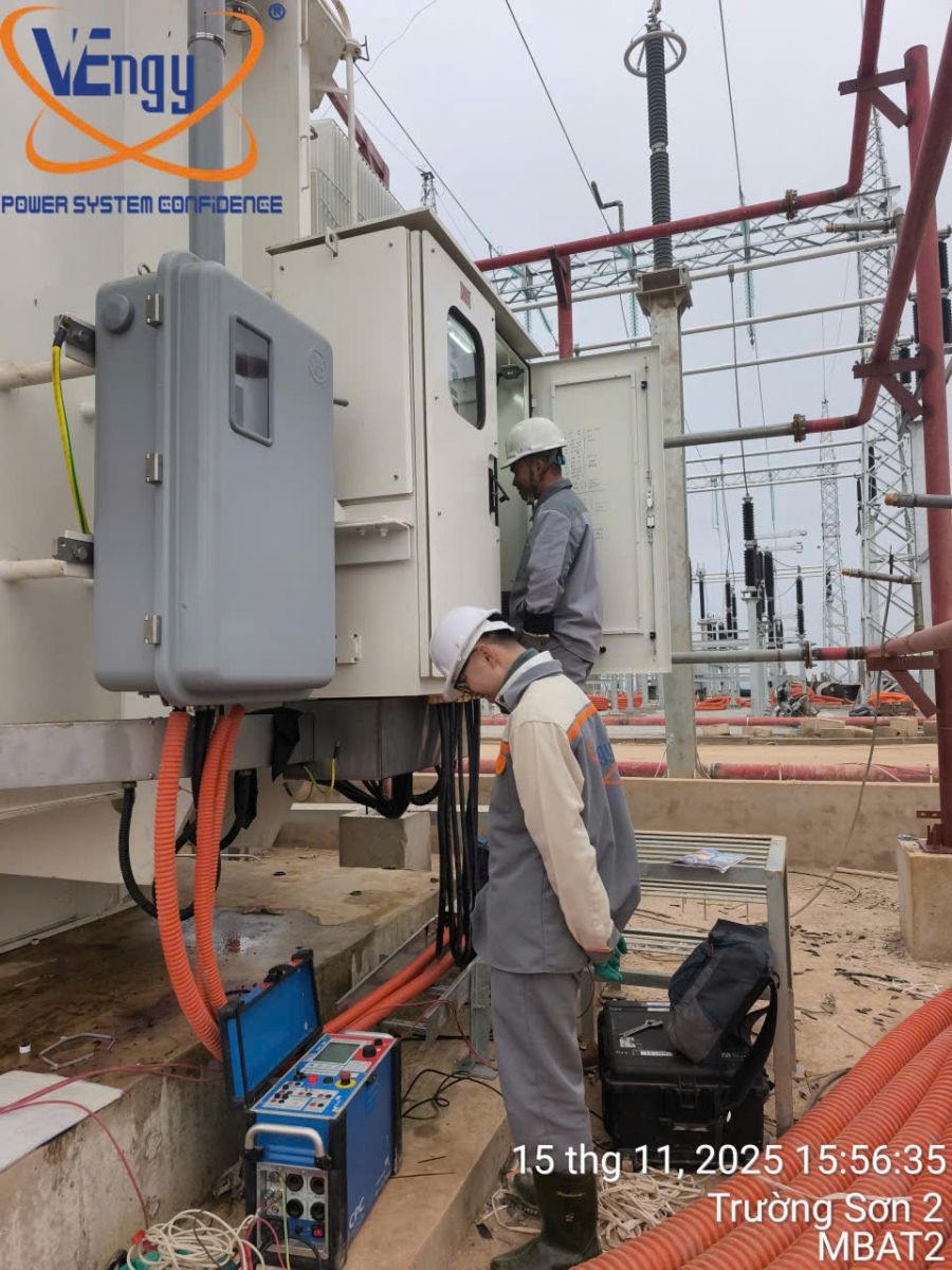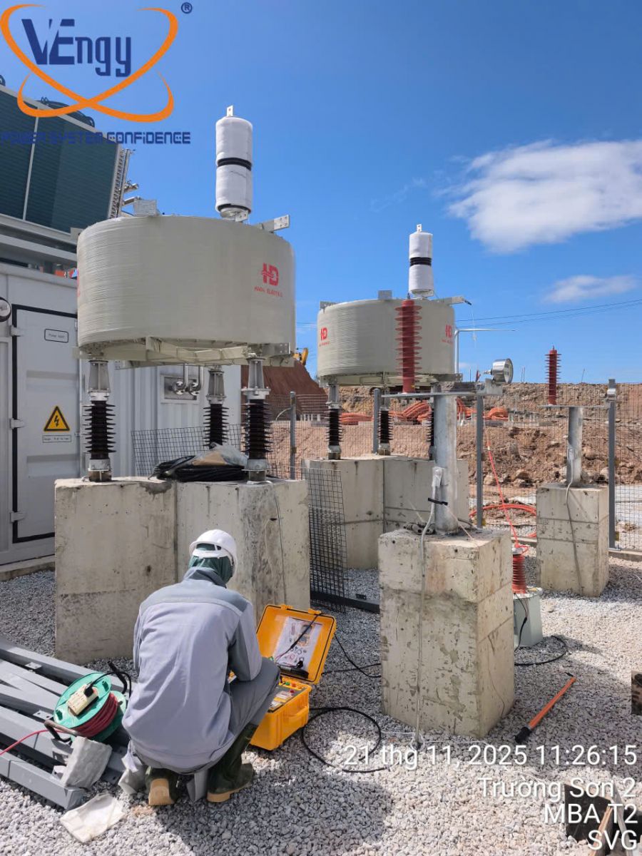 Trong phạm vi công việc được giao theo hồ sơ thiết kế và khối lượng chi tiết của dự án, VEngy đã từng bước triển khai các hạng mục thí nghiệm, kiểm tra và hiệu chỉnh đối với hệ thống thiết bị chính và phụ trợ của Trạm biến áp 220kV. Các nội dung công việc bao gồm thí nghiệm máy biến áp lực 220kV; kiểm tra, thí nghiệm và hiệu chỉnh thiết bị đóng cắt cao áp; thí nghiệm máy biến dòng điện, máy biến điện áp; rà soát, hiệu chỉnh hệ thống bảo vệ rơle, đo lường, điều khiển và SCADA; kiểm tra hệ thống nối đất, chống sét; thí nghiệm cáp lực, cáp điều khiển và các mạch nhị thứ. Toàn bộ các công việc này đều được thực hiện tuân thủ theo các tiêu chuẩn kỹ thuật áp dụng, quy định hiện hành của phía Lào và yêu cầu cụ thể của dự án, với sự ưu tiên cao nhất cho yếu tố an toàn.