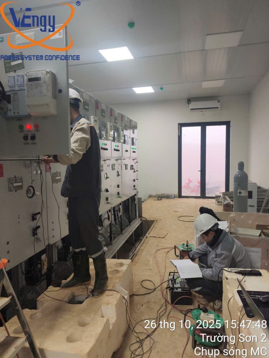 Công ty Cổ phần Thương mại và Kỹ thuật Năng lượng Việt Nam (VEngy) vừa hoàn thành công tác thí nghiệm và phối hợp đóng điện Trạm biến áp 220kV thuộc Dự án Nhà máy Điện gió Trường Sơn 2, đặt tại các huyện Xaychamphone và Khamkeuth, tỉnh Bolikhamxay, CHDCND Lào. Đây là kết quả của quá trình làm việc nghiêm túc, thận trọng và sự phối hợp chặt chẽ giữa VEngy với Chủ đầu tư, Tổng thầu, đơn vị tư vấn giám sát cùng các bên liên quan, nhằm hướng tới mục tiêu đóng điện an toàn, đúng yêu cầu kỹ thuật và tiến độ chung của dự án.