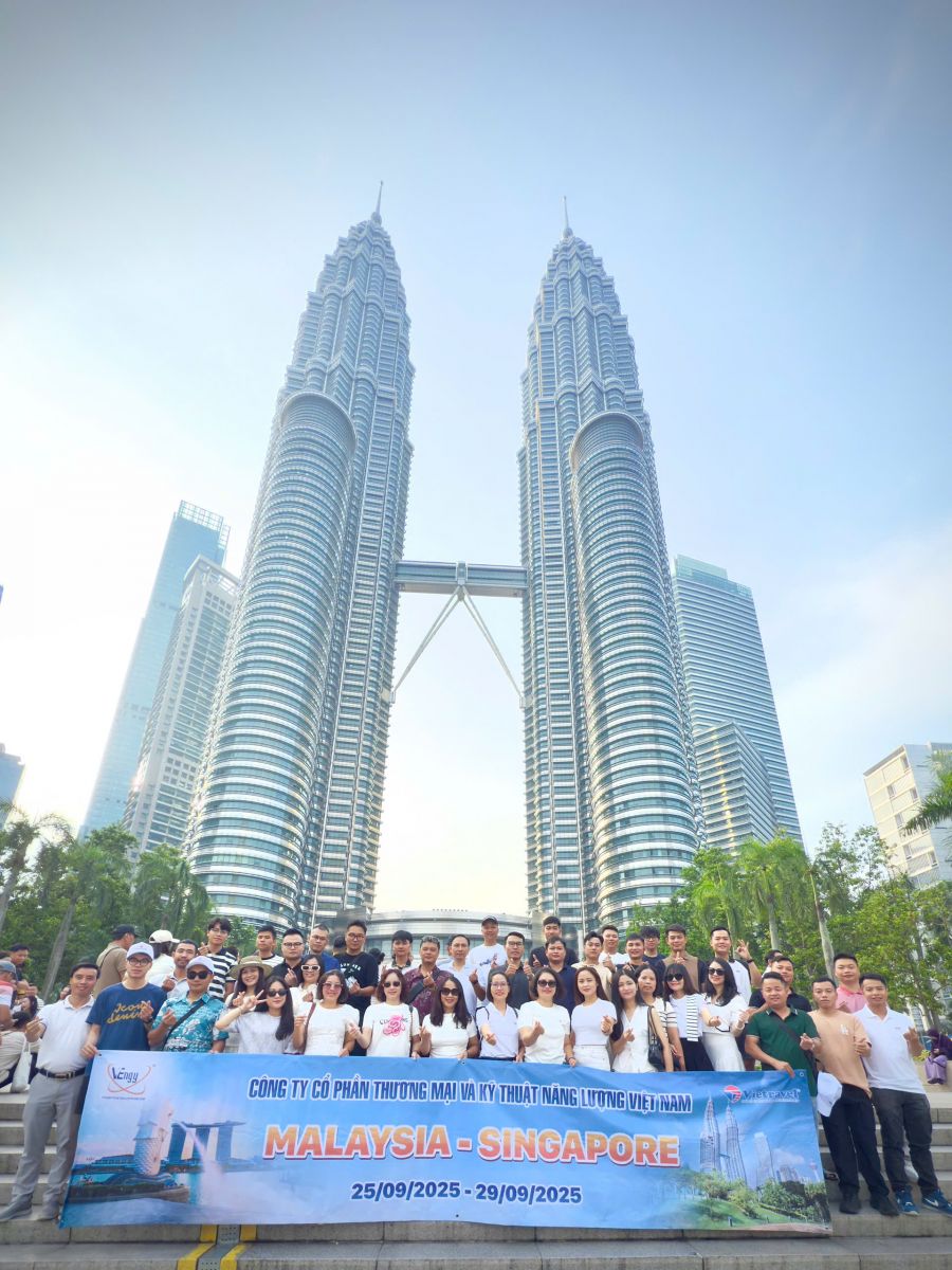 Trong không khí hứng khởi khi vừa bước sang tuổi mới với đầy khát vọng và quyết tâm, Công ty Cổ phần Thương mại và Kỹ thuật Năng lượng Việt Nam (VEngy) đã tổ chức chương trình Du lịch thường niên năm 2025 dành cho toàn thể cán bộ, nhân viên với chuyến hành trình khám phá hai quốc gia hiện đại và xinh đẹp: Malaysia – Singapore. Đây là một trong những hoạt động truyền thống mà VEngy duy trì qua nhiều năm, không chỉ nhằm tạo điều kiện để các thành viên trong đại gia đình công ty được nghỉ ngơi, thư giãn sau những tháng ngày làm việc miệt mài, mà còn là dịp gắn kết tinh thần đồng đội, khơi dậy niềm tự hào và tình yêu thương dành cho ngôi nhà chung VEngy.